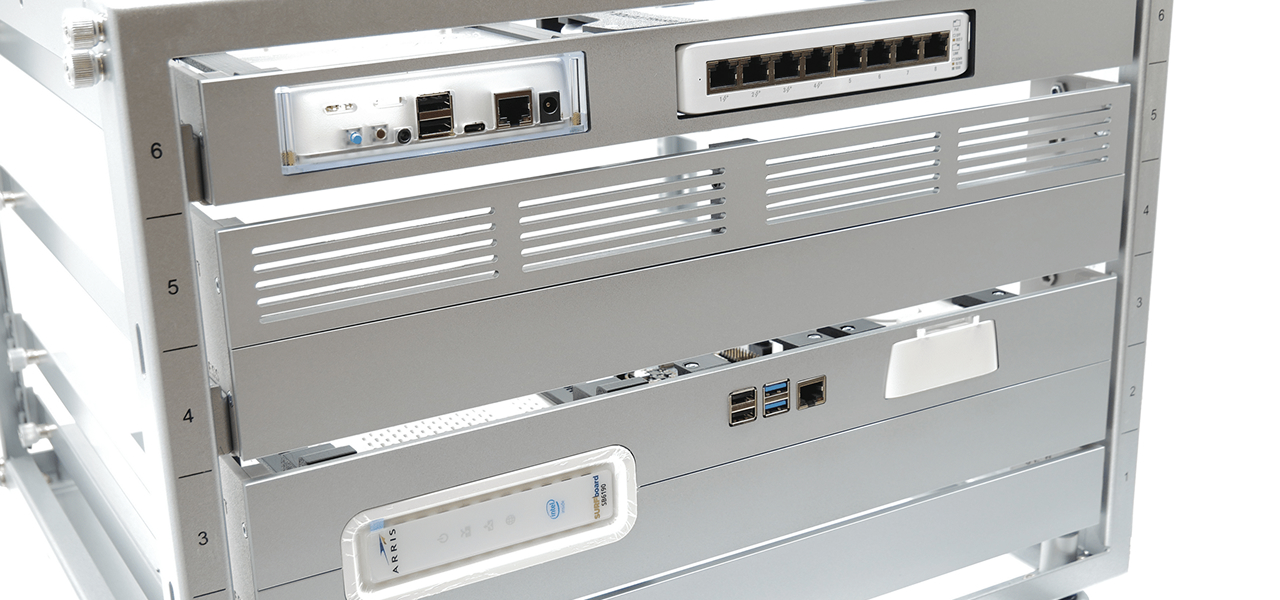 Tus dispositivos se montan con precisión en los productos thingsINrack. Los perfiles del rack pueden montarse boca abajo, horizontalmente o verticalmente, los dispositivos nunca se caen.